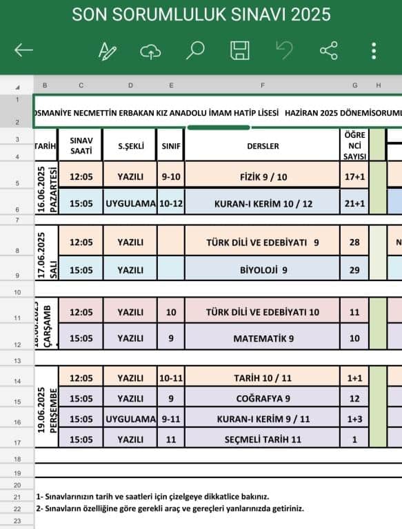 2025 HAZİRAN SORUMLULUK SINAV PROGRAMIDIR.